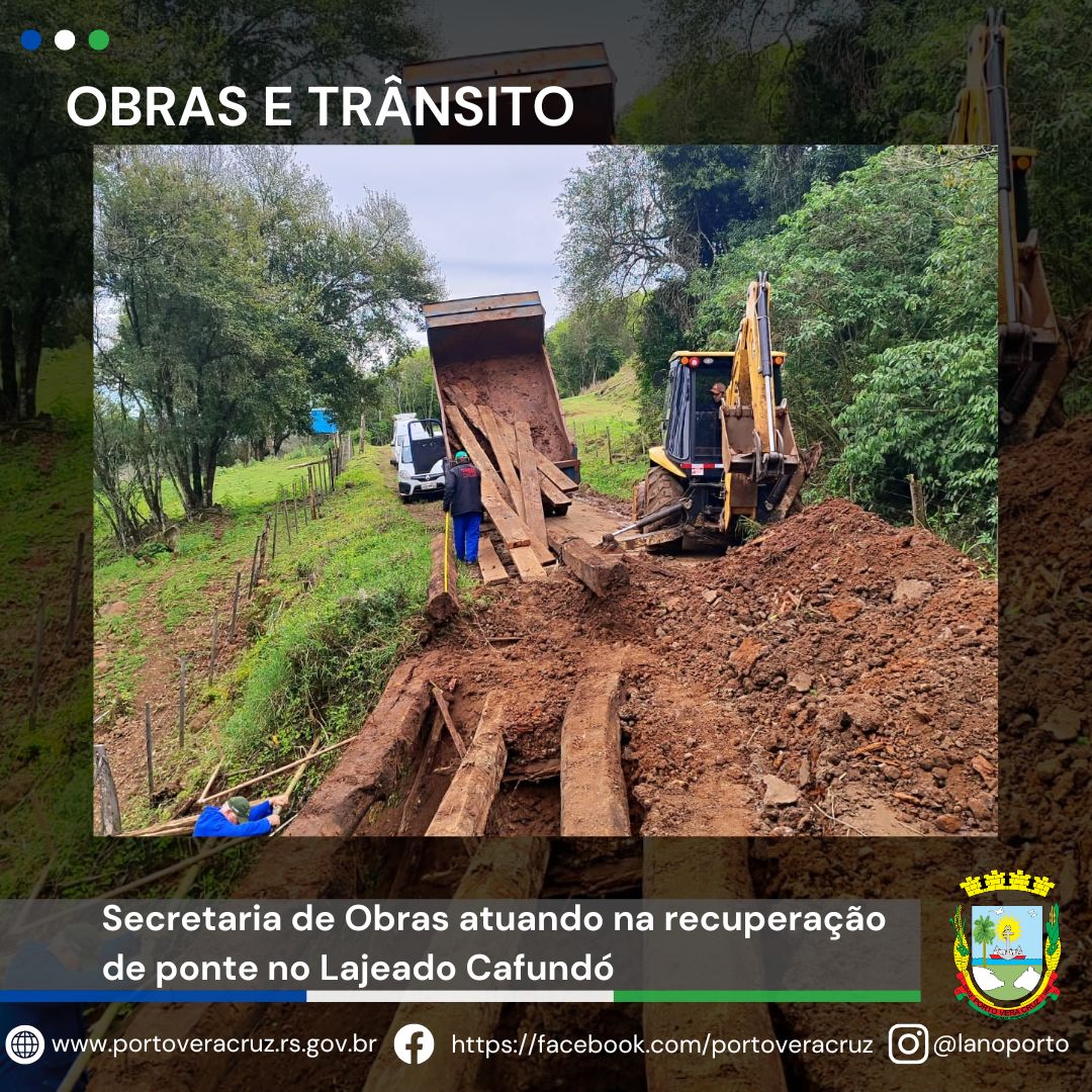 Outra equipe da secretaria de Obras segue com força total nos trabalhos de recuperação da infraestrutura do nosso município. Os esforços se concentram também na ponte localizada na Linha Cafundo, em frente à propriedade do senhor Vilmar Kalsing.