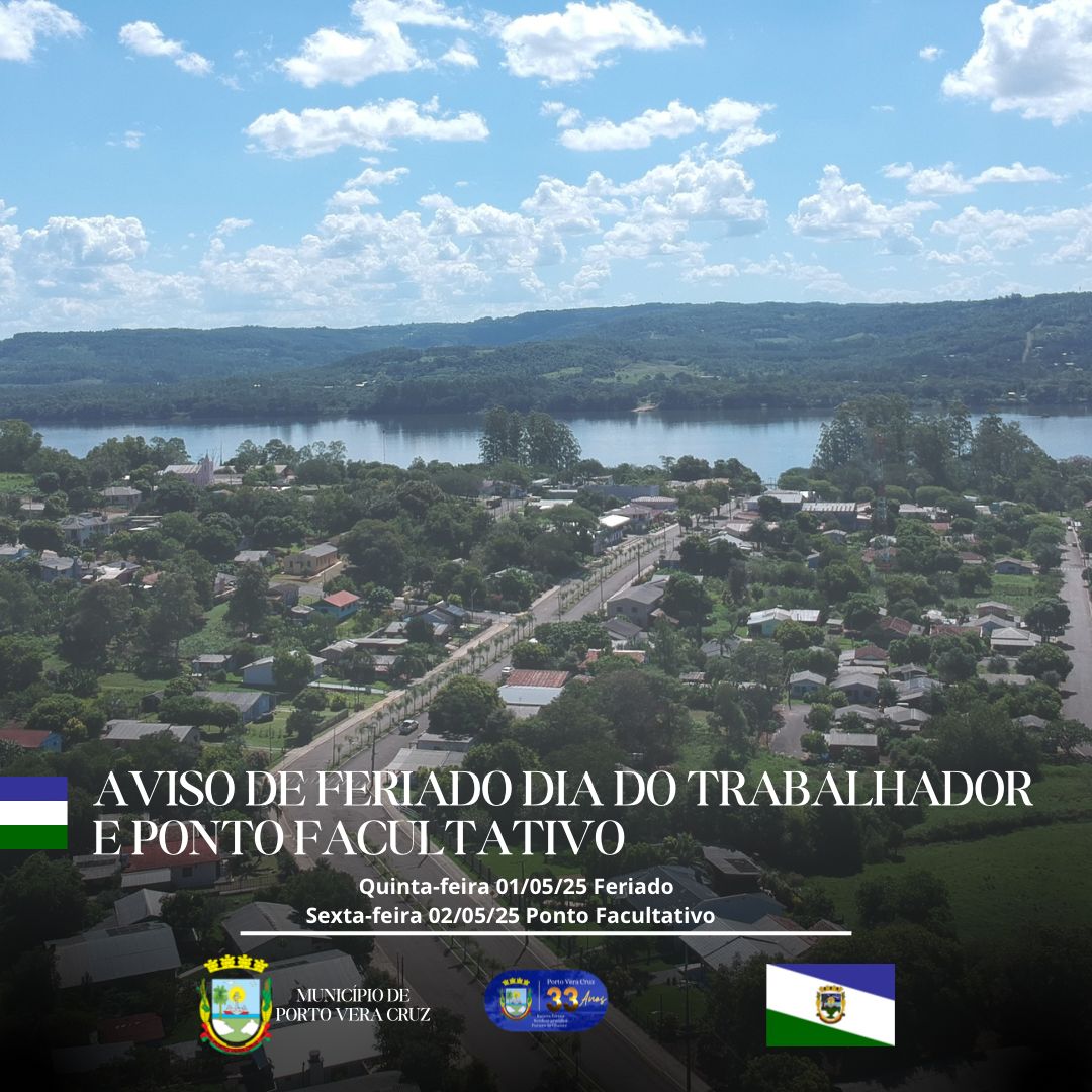 A Prefeitura estabelece ponto facultativo nesta sexta-feira (02), logo após o feriado de 1º de maio (Dia do Trabalho).