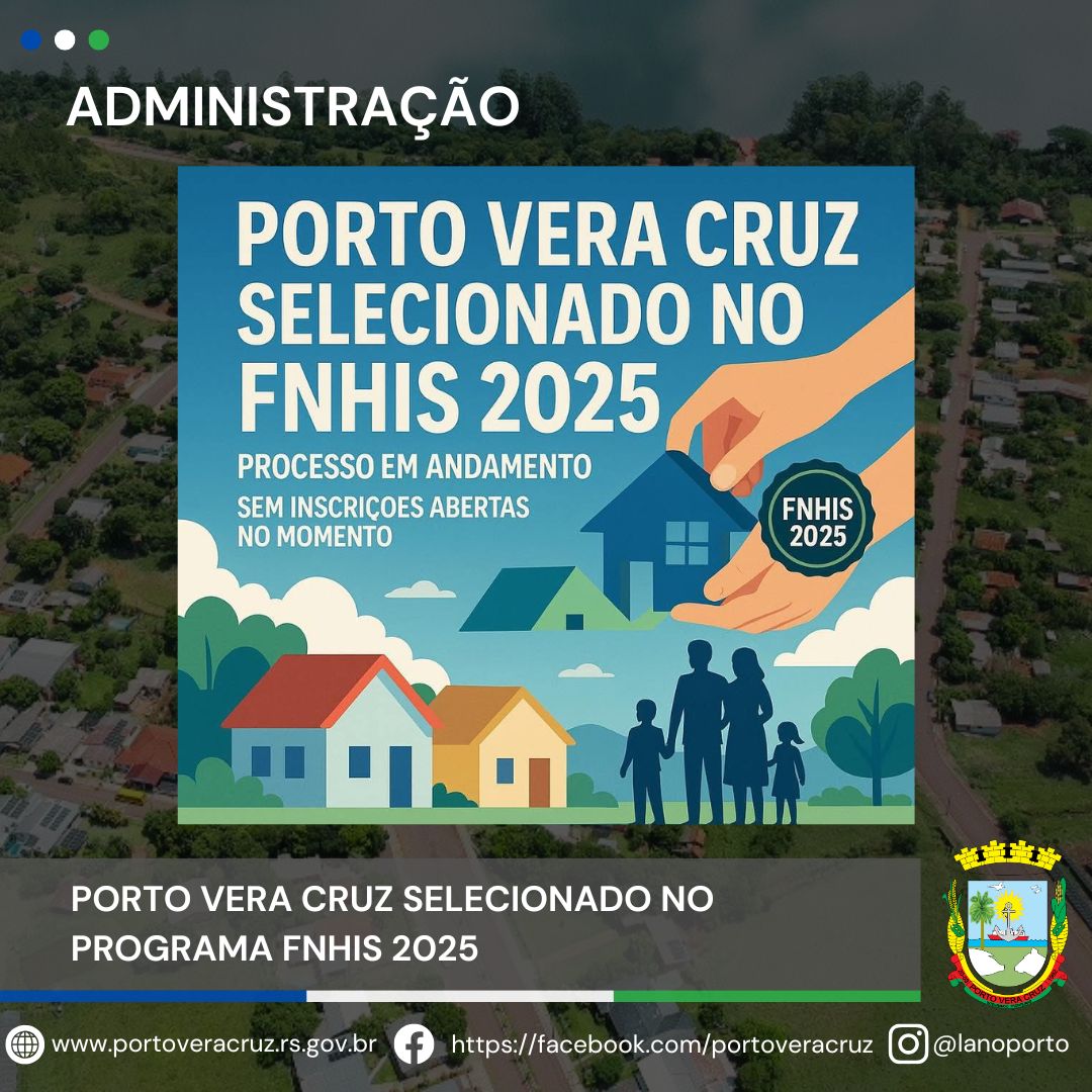 GRANDE NOTÍCIA: Através do trabalho desta gestão, em menos de 7 meses o município de Porto Vera Cruz foi oficialmente selecionado pelo Ministério das Cidades para receber recursos do Fundo Nacional de Habitação de Interesse Social (FNHIS) 2025!