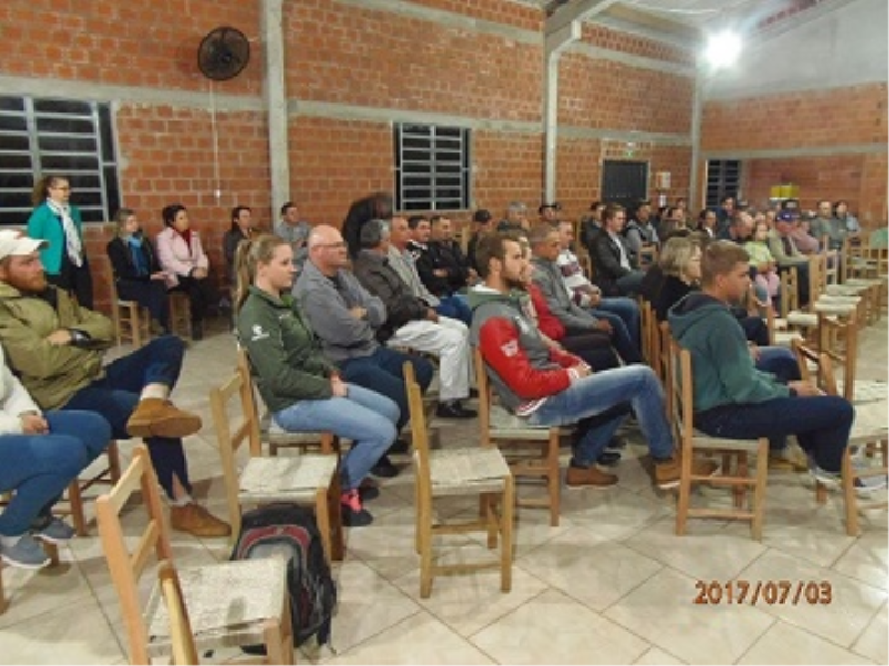 A Administração Municipal realizou dois encontros de grande importância com agricultores e produtores do município na Sede do Sindicato dos Servidores. No dia 29/06, estiveram presentes mais de 110 agricultores para discutirem juntos com o governo municipal sobre os incentivos à produção leiteira, pastagens, serviços de máquinas, entre outros. Já no dia 03/07, ocorreu o encontro com os produtores suinícolas e aqueles que têm interesse em iniciar este ramo de atividade. Estiveram reunidos mais de 70 pessoas onde foi abordado sobre os incentivos concedidos pelo Município, retorno dos tributos ao Poder Público, cuidados com o meio ambiente, além da apresentação do médico veterinário Daniel Bretano e Elton Bratz representando o Alibem, parceira integradora dos suinocultores. Segundo o Prefeito, os dois encontros foram de muito sucesso e proveitosos para o aprimoramento das práticas e para se estabelecer novas diretrizes em busca da melhoria na produção. A oportunidade de ouvir e discutir a realidade diretamente com os produtores faz com que as ações sejam mais eficazes, sendo este um dos principais objetivos do Governo Empreendedor.