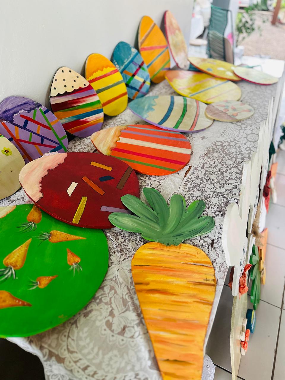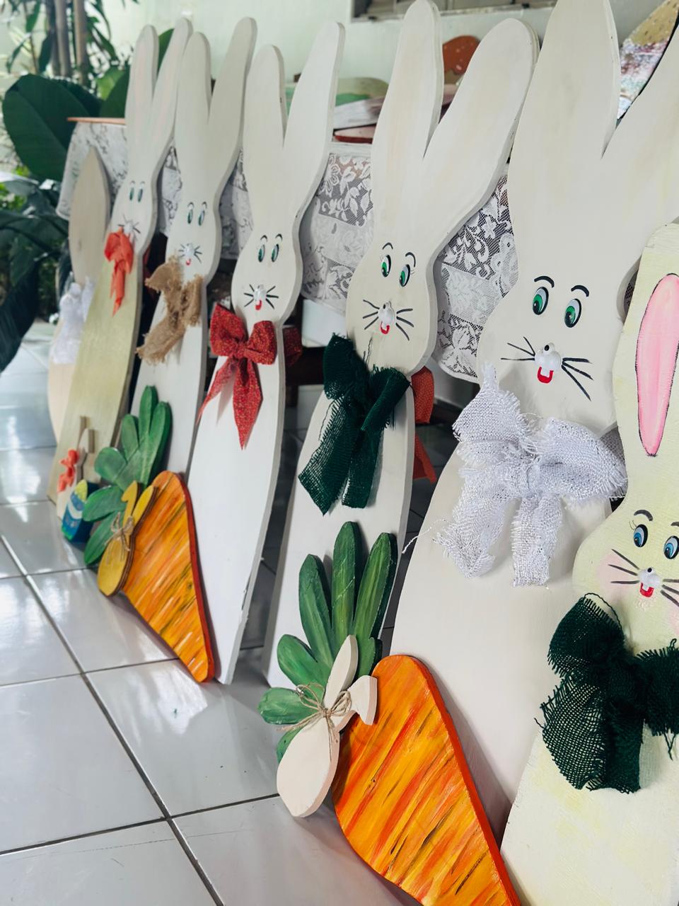 Desde coelhos feito em madeira até ovos gigantes pintados à mão, os voluntários – incluindo Primeira Dama, artesãos, donas de casa, construtores a área civil e servidores públicos, criaram peças exclusivas usando materiais recicláveis e muita imaginação. O resultado? Ruas, praças e prédios públicos ganharam vida com uma decoração que já está encantando a todos.