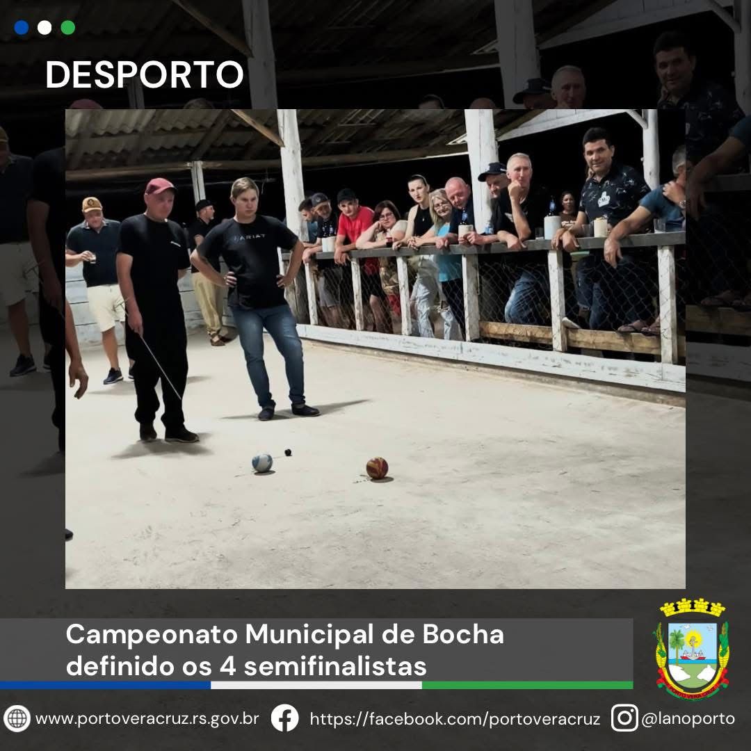 O Conselho Municipal de Desporto (CMD) de Porto Vera Cruz divulga as equipes classificadas para a fase semifinal do Campeonato Municipal de Bocha, após a conclusão da 6ª rodada no último final de semana.