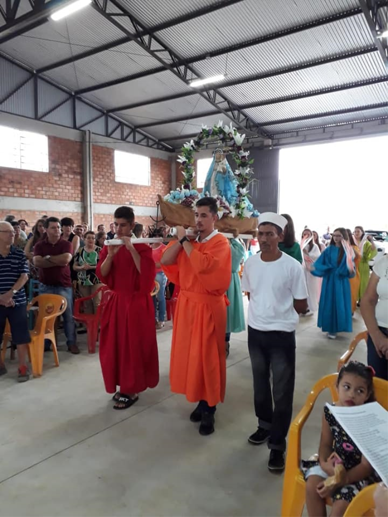 9hs: início da procissão em frente à Igreja Católica até o pavilhão com a imagem de Nossa Senhora dos Navegantes e padroeiros das comunidades;