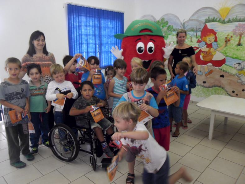 Também foi trabalhado com os estudantes questões relativas a destinação correta de resíduos (lixo) dentro do tema coleta seletiva. As dicas foram reforçadas pelo Mascote Fisquinho – Amigo da Comunidade – que faz parte da equipe do GEFIM e acompanhou as visitas nas unidades escolares.