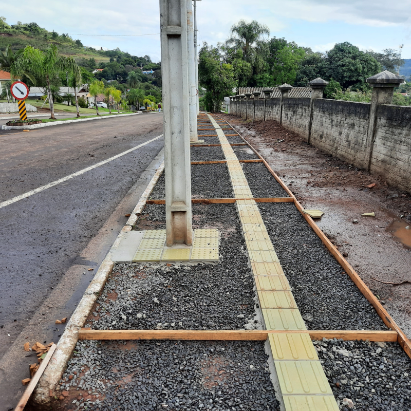A iniciativa do poder público está embasada no parágrafo 2º do art. 46 da LDU nº 1.025/2010, que trata que a “inexecução do revestimento na forma prevista nos artigos 43 e 44 e no prazo estabelecido no § 1º e no caput deste artigo, implicará na execução do passeio público pelo município conforme disponibilidade orçamentária e financeira, que lançará para cobrança o valor de 50% do custo do metro quadrado da obra em nome do contribuinte com o acréscimo de 1% para cobrir despesas administrativas”. Ainda como benefício para o contribuinte, a Prefeitura Municipal disponibilizou mão de obra própria para redução dos custos da obra.