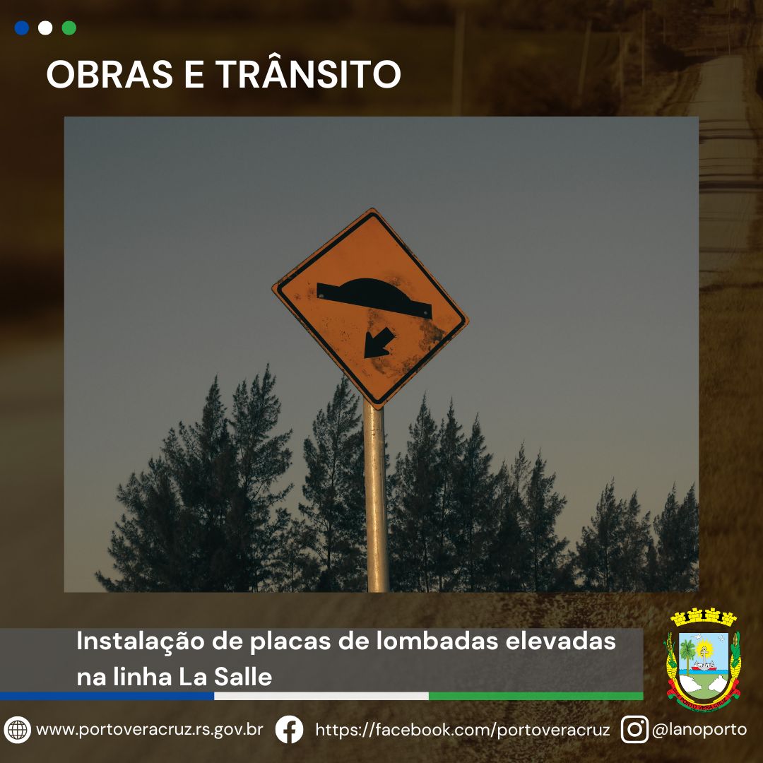 A Secretaria de Obras e Trânsito informa que, foram instaladas placas com a indicação de que em breve teremos a presença de lombadas elevadas na comunidade de La Salle, em ambos os sentidos da via.