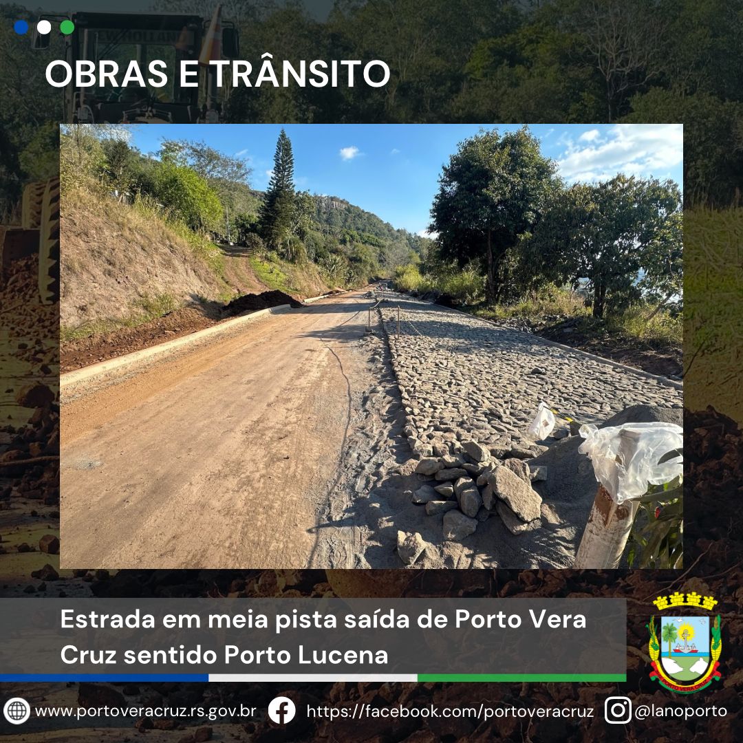 A Secretaria Municipal de Obras e Trânsito está realizando importantes melhorias para todos nós! No momento, estamos realizando o calçamento da estrada na saída de Porto Vera Cruz em direção a Porto Lucena.